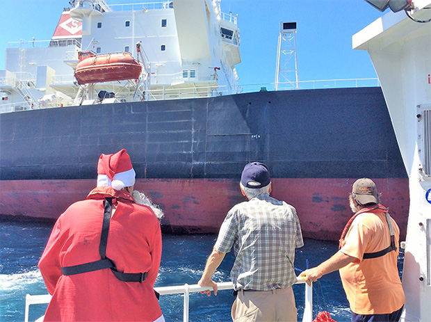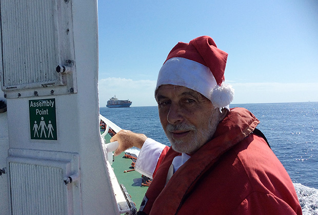 We know Santa uses a sleigh but this time he had to use a speedboat to get to the ships.